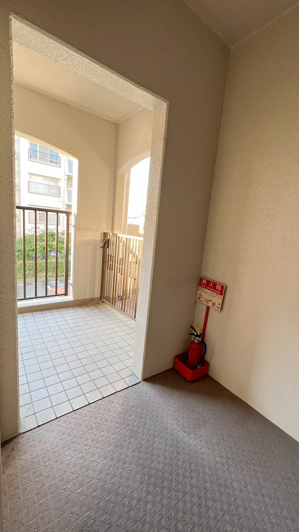 勝手口からはポーチの奥部分に出られる通路になってました。